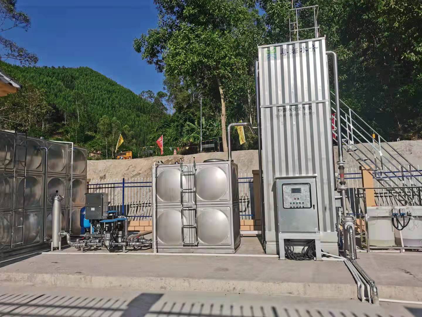 該供水站采用智慧型膜過(guò)濾凈水設(shè)備及一體化泵站加壓,確保水量、水質(zhì)、水壓滿足群眾需求。建筑風(fēng)格具有嶺南特色,水站墻面采用了暖黃色涂料,與周邊環(huán)境相協(xié)調(diào),達(dá)到了“功能便民環(huán)境美”的目標(biāo)。