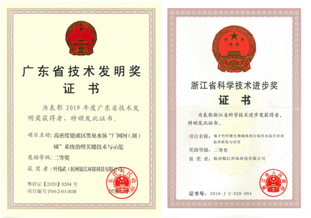 銀江環(huán)保開發(fā)的“基于竹纖維生物載體的污染河水綜合治理技術(shù)與應(yīng)用”獲得浙江省科技進(jìn)步二等獎(jiǎng)。