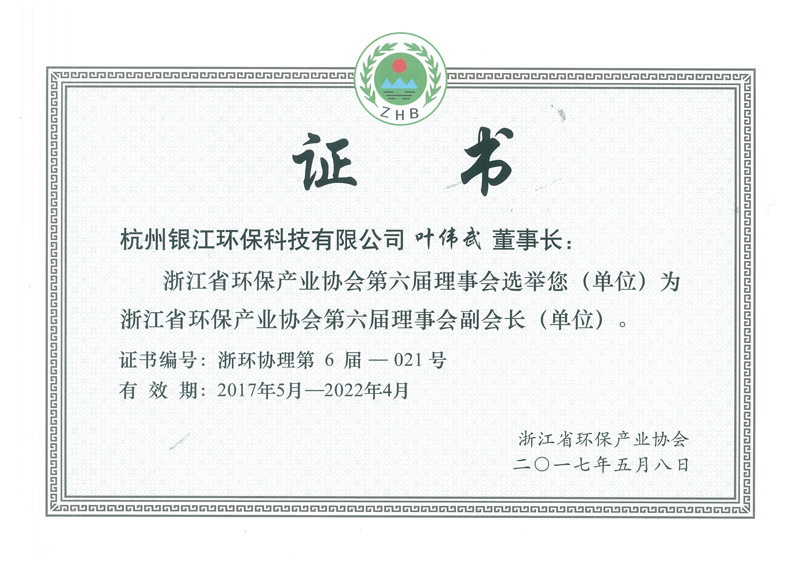 浙江省環(huán)保產(chǎn)業(yè)協(xié)會(huì)第六屆理事會(huì)證書