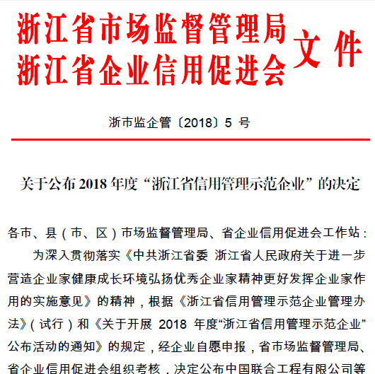 銀江環(huán)保榮獲2018年度“浙江省信用管理示范企業(yè)”