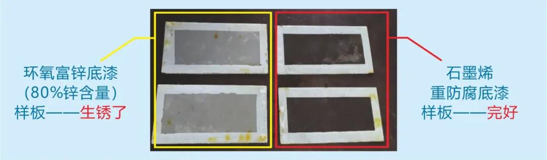 石墨烯防腐涂料與傳統(tǒng)涂料海水浸泡100天后對比圖