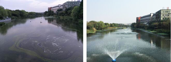 在適當?shù)奈恢孟蛩w進行人工充氧,同時建立整個水體的有效循環(huán),避免水體出現(xiàn)缺氧或厭氧區(qū),使整個水體自凈過程始終處于好氧狀態(tài)。因此,可以采用人工曝氣的方式向水中充氧,加速水體復氧過程,提高水體中好氧微生物的活力,以改善水質(zhì)。