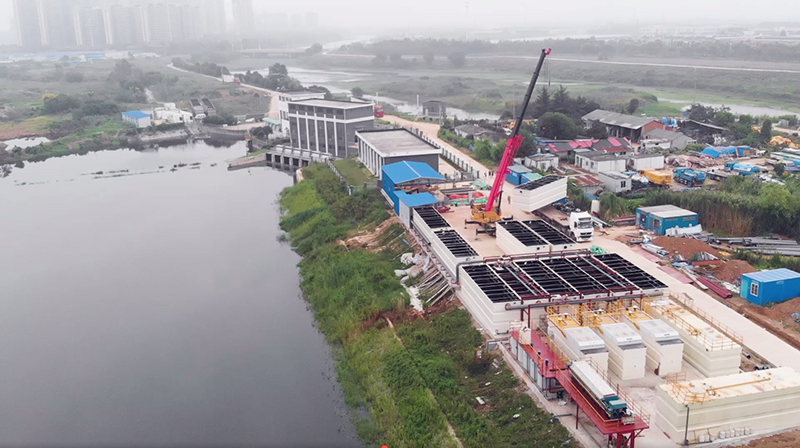項(xiàng)目簡介:新興圩泵站位于南京市江寧區(qū)。泵站主要收集將軍大道以東、童橋路以南、蘇源大道以西、正方大道以北區(qū)域的雨水,匯水總面積3.35平方公里,前池蓄水量約3萬立方。新興圩泵站因年久失修已無法正常運(yùn)行且缺少相應(yīng)的污水處理設(shè)備,積存雨污水外排對(duì)秦淮河水質(zhì)造成嚴(yán)重影響。我司響應(yīng)政府需求,為該污水泵站配套6000m3/d KtCQ水體快速凈化器,出水達(dá)到《城市黑臭水體整治工作指南》中消除黑臭標(biāo)準(zhǔn),同時(shí)提供運(yùn)維服務(wù)。