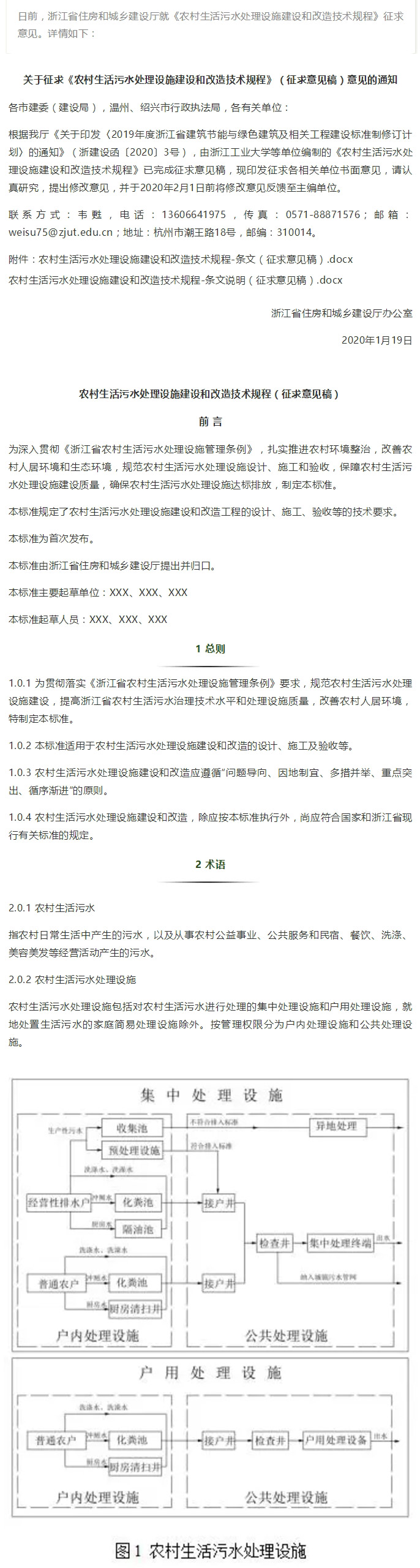浙江省《農(nóng)村生活污水處理設(shè)施建設(shè)和改造技術(shù)規(guī)程》(征求意見(jiàn)稿)發(fā)布日期:2020-03-08