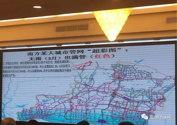 據(jù)他提供的南方某大城市管網(wǎng)運行超彩圖顯示,納污范圍內(nèi)共布設(shè)有150個水位點,在雨少季的3月份,滿管天數(shù)超過20天的點位為65處,約占總數(shù)的43.3%,而在6月份,滿管天數(shù)超過20天的點位數(shù)則更多,為84處,約占總數(shù)的56%。