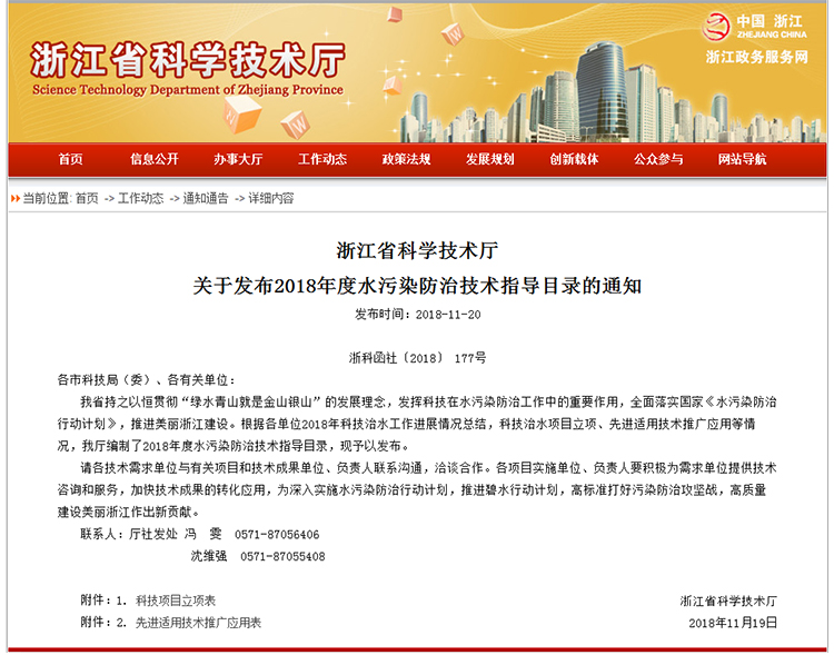 恭賀銀江環(huán)?!敖M合式生態(tài)浮島”技術(shù)列入2018年度水污染防治技術(shù)指導(dǎo)目錄。