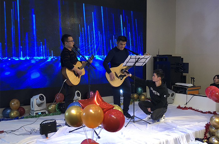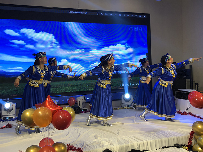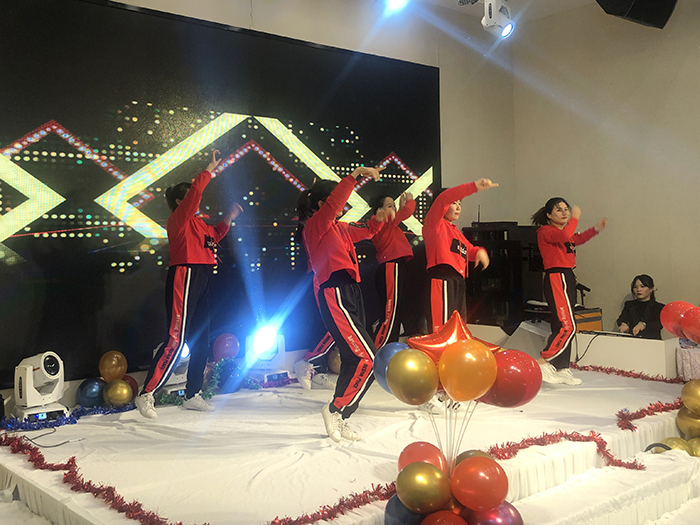 新年酒會(huì)和文藝節(jié)目同時(shí)進(jìn)行,歡快的開場(chǎng)舞《護(hù)花使者》拉開晚會(huì)序幕,隨后,優(yōu)秀員工頒獎(jiǎng),歌曲、舞蹈、彈唱、游戲、抽獎(jiǎng)等穿插進(jìn)行。