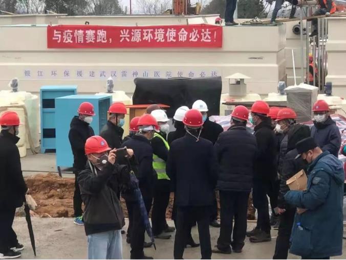 湖北省環(huán)保廳,武漢市委市政府領(lǐng)導(dǎo)視察火神山醫(yī)院污水處理站現(xiàn)場。
