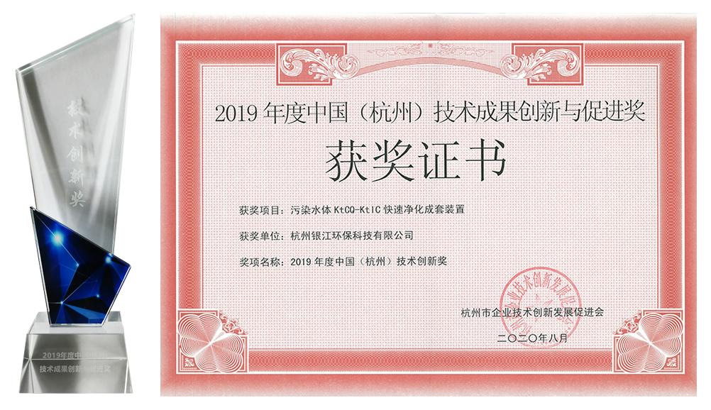 9月1日,銀江環(huán)保應(yīng)邀參加杭州市技術(shù)創(chuàng)新發(fā)展促進(jìn)會(huì)第二屆三次會(huì)員大會(huì)并領(lǐng)取獎(jiǎng)項(xiàng)。銀江環(huán)保污染水體KtCQ-KtIC快速凈化成套裝置榮獲“2019年度中國(杭州)技術(shù)成果創(chuàng)新與促進(jìn)獎(jiǎng)”!