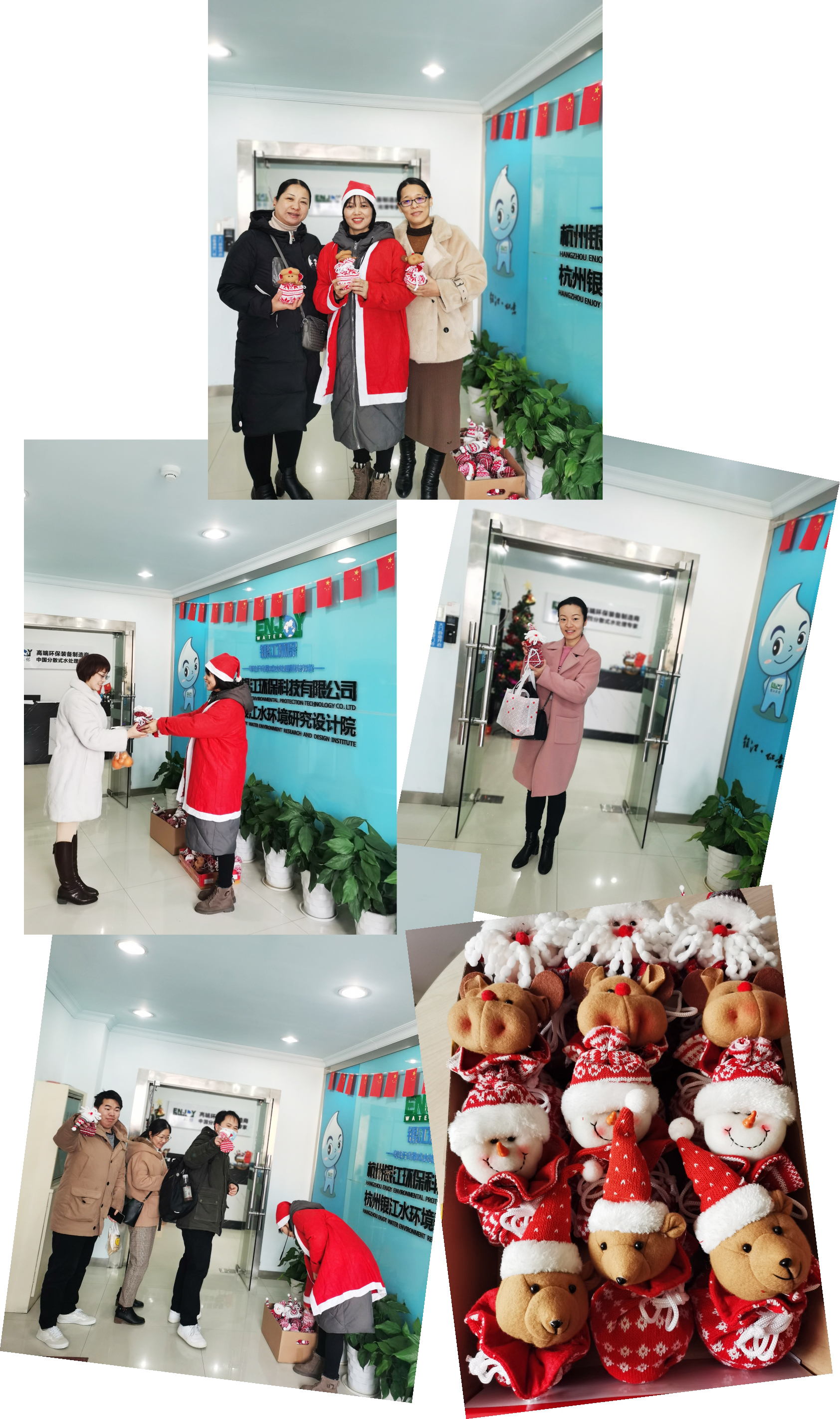 公司里洋溢著節(jié)日的氣氛,后勤部為每位同事準(zhǔn)備了精美的圣誕禮物,由圣誕老人派發(fā)給大家。