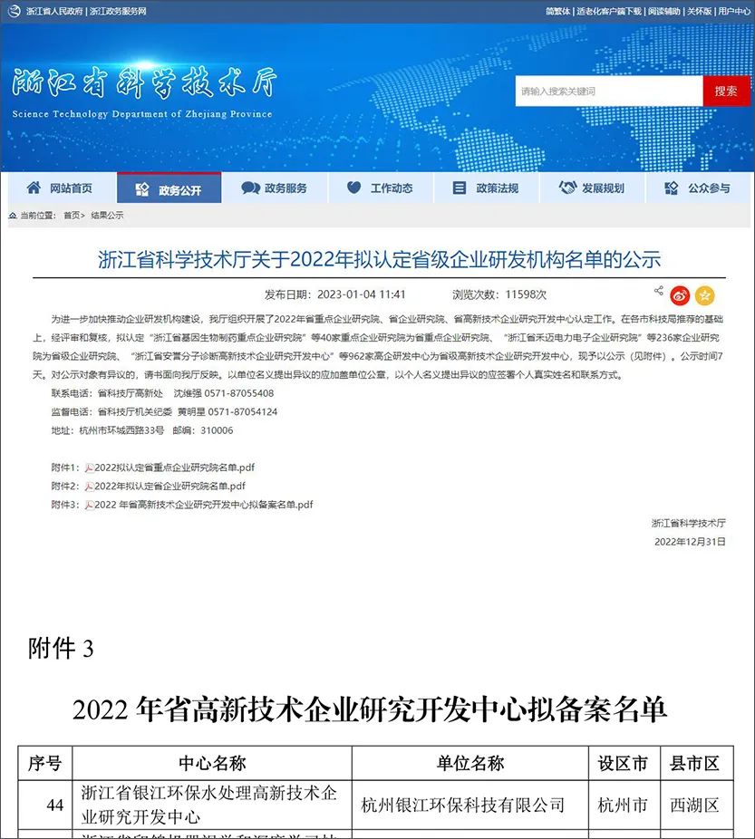 銀江環(huán)保獲得省級高新企業(yè)研發(fā)中心認(rèn)定以及2項科技獎,為2023年高質(zhì)量發(fā)展夯實基礎(chǔ)發(fā)布日期:2023-01-06